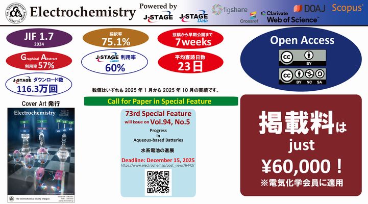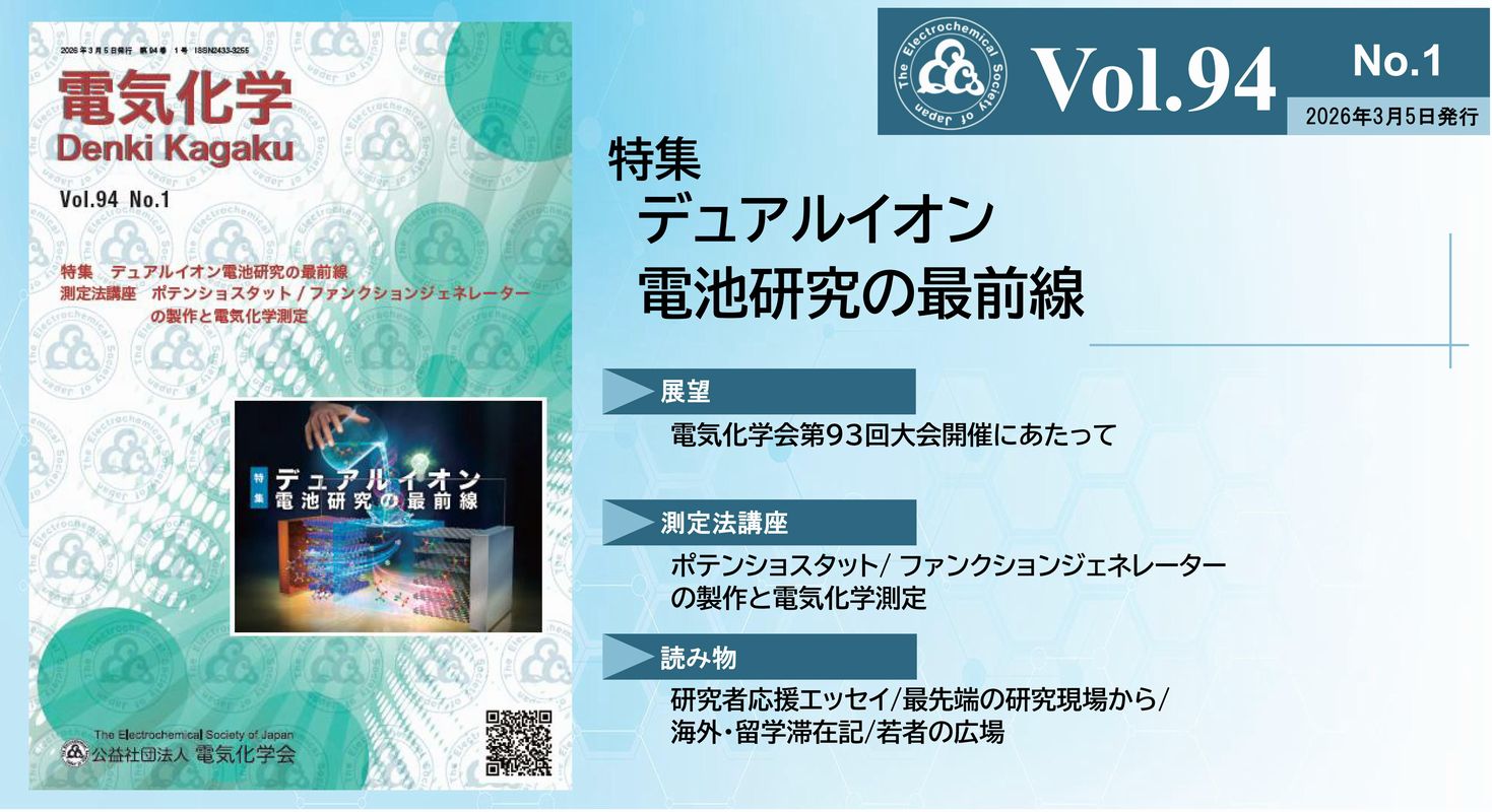 | 2024.03.11 | お知らせ | 2024年1・2月 Electrochemistry誌ダウンロード数上位論文のお知らせ |
