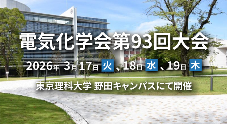 2025.05.02 | 各賞・助成 | 2026年電気化学会賞(武井賞)、学術賞、技術賞(棚橋賞)、進歩賞(佐野賞)、女性躍進賞の推薦募集 |